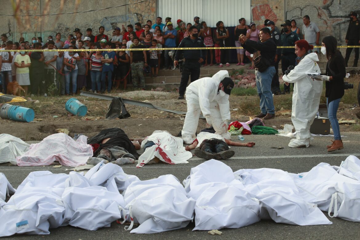 The truck had been packed with at least 160 migrants when it crashed into a support for a pedestrian bridge in the Mexican state of Chiapas.(Image credit: STR)